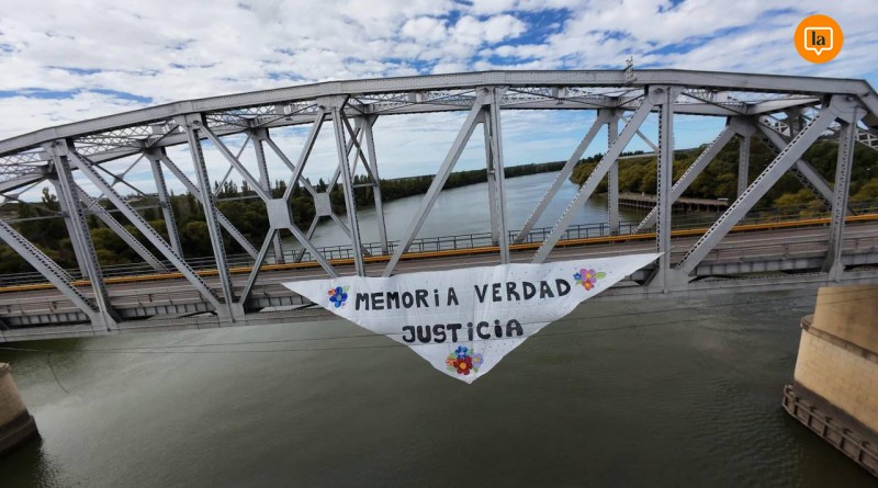 Tras el acto central, la conmemoración se trasladó al puente Ferrocarretero que une Viedma con Carmen de Patagones. Allí se llevó adelante un “pañuelazo”, con el despliegue de un pañuelo gigante en el centro del puente, visible desde ambas ciudades, como símbolo de la lucha por la Memoria, la Verdad y la Justicia.
