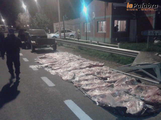 Una gran cantidad de carne vacuna y de cerdo fue secuestrada esta madrugada por personal de Seguridad Vial de la Policía de Río Negro cuando intentaba sortear el ruti...