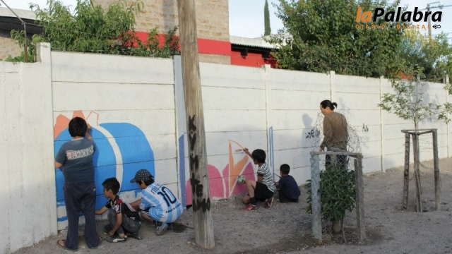 En la oportunidad, un grupo de niños coordinados por los artistas plásticos Rafael Crivaro y Patricio Graham, pintaron un mural en un espacio del barrio.