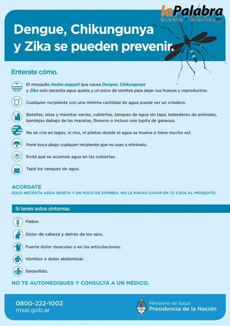 En este sentido, se informa que para prevenir el Dengue se debe evitar principalmente la acumulación de agua en cualquier tipo de recipiente.