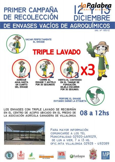 Los envases se recibirán en el Centro de Acopio Transitorio ubicado en el predio de la Asociación Agrícola Ganadera de Villalonga.