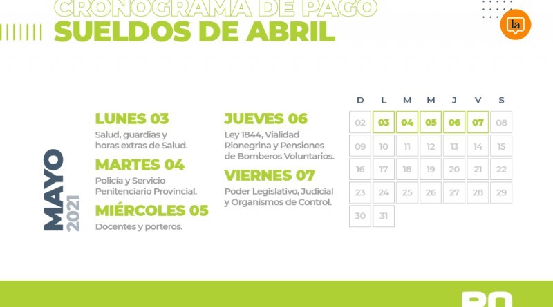 Con el depósito al sector de Salud, incluyendo guardias y horas extras, comenzará este lunes 3 de mayo el pago de sueldos a los trabajadores y trabajadoras de la Administración Púb...