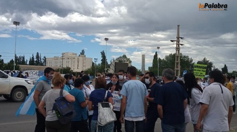 Los trabajadores de la salud se manifiestan en los puentes carreteros de Cipolletti, luego de denunciar que la gobernadora, Arabela Carreras, suspendió de manera sorpresiva la reun...