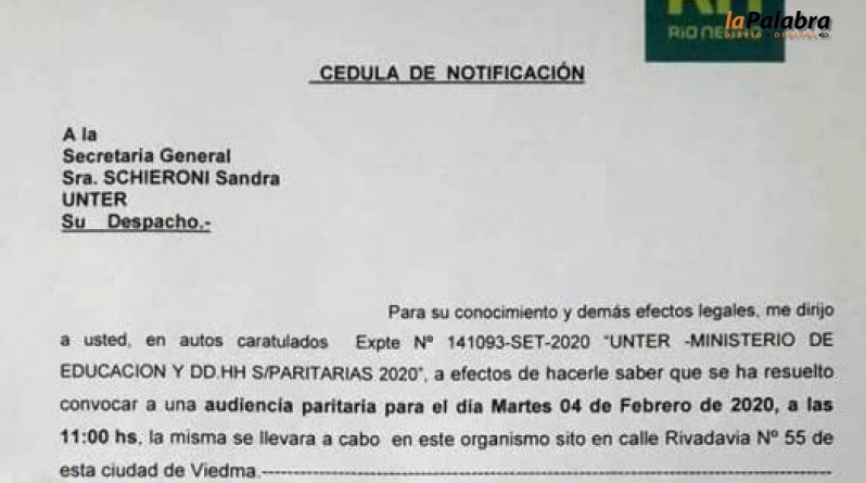 El Ministerio de Educación y Derechos Humanos de la provincia convocó al sindicato docente UNTER a una reunión paritaria para el próximo martes 4 de Febrero. Ese mismo día se lleva...