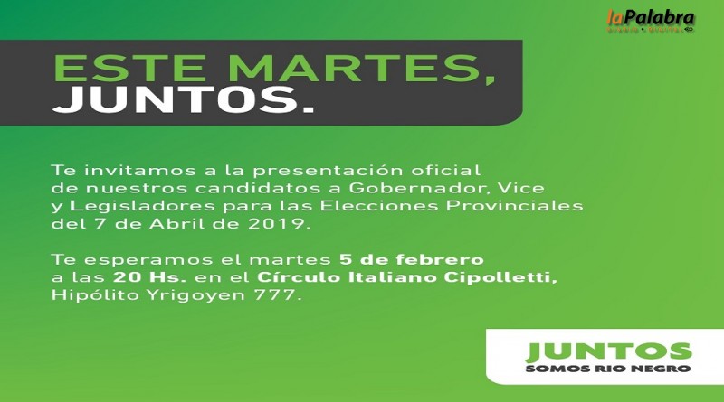 Unos 10 días antes del vencimiento de plazos para la presentación de listas ante la Justicia Electoral Juntos Somos Río Negro realizará un acto en la ciudad de Cipolletti donde pre...
