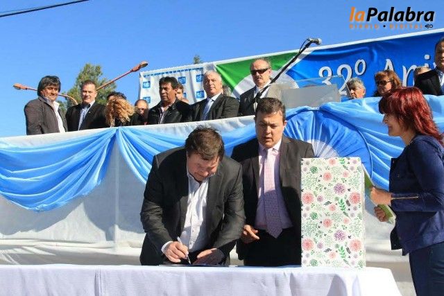Acompañado por el presidente del Concejo Deliberante, Pedro Dantas; los ministros de Gobierno y de Desarrollo Social, Luis Di Giácomo y Fabián Galli; el secret...