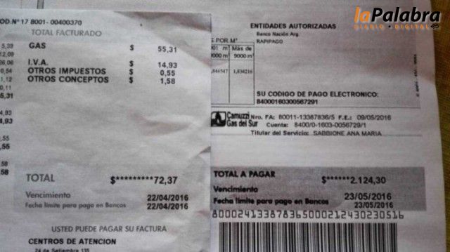Las impulsoras de esta medida difundieron los valores que habrían obtenido como respuesta de Camuzzi ante la consulta: las facturas con vencimiento del 22/04 tenían u...