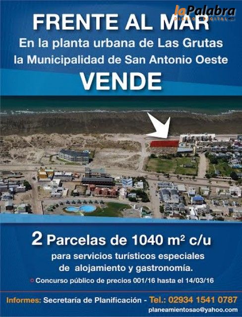 Apertura de sobres: El día 15 de marzo de 2016, a la hora 10:00, en el Salón de Actos de la Municipalidad de San Antonio Oeste, sito en calle Brown Nº 286.