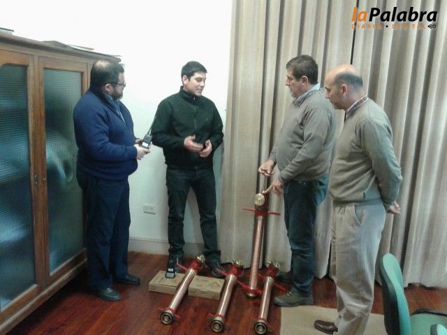 Se entregaron cuatro columnas hidrantes de bronce, que poseen una boca y sirven para la recarga de las autobombas. Se accionan en principio de manera manual y luego el propio cauda...