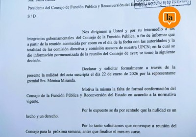 La Unión del Personal Civil de la Nación (UPCN) emitió un comunicado en el que criticó las políticas del Gobierno provincial y recordó que su prioridad debe ser "servir a su propia gente, y no sólo los intereses del Gobierno central". En este sentido, el gremio destacó que no está de acuerdo con las decisiones del ejecutivo provincial, lo que llevó al gremio a la presentación de diversas propuestas para mejorar las condiciones laborales de los trabajadores públicos.