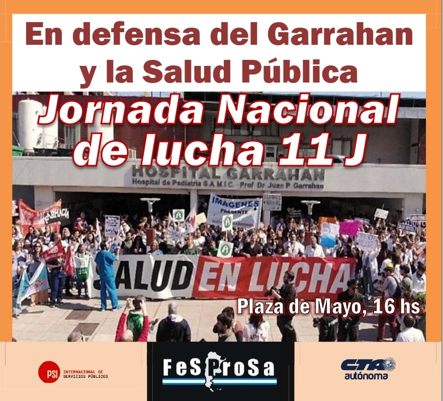El paro del 11 de junio se realiza también en solidaridad con las y los trabajadores del Hospital Garrahan, uno de los centros de referencia en salud pediátrica del país, que enfrenta una situación crítica similar. En la Ciudad de Buenos Aires, se espera una concentración frente al hospital y una movilización hacia Plaza de Mayo a las 16 horas.