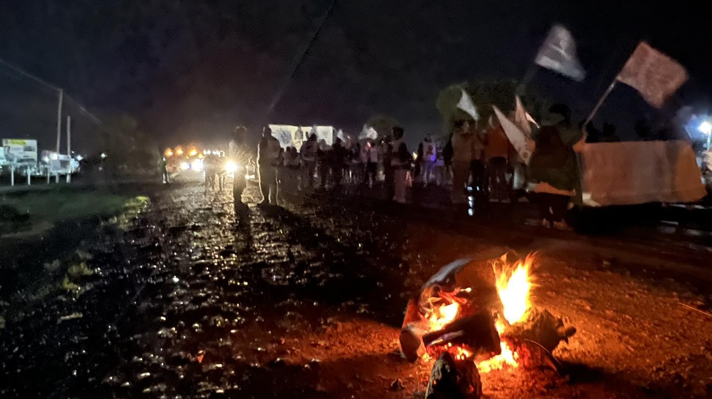 En el lugar trabajan efectivos de Gendarmería Nacional Argentina y de la Policía de Río Negro, que supervisan el operativo de tránsito y permanecen en la zona mientras se desarrolla la protesta.