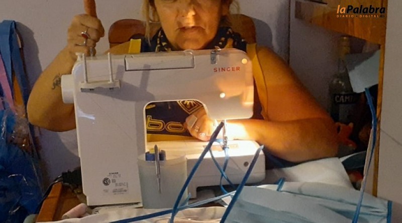 A partir de pedidos de compañeros afiliados, la responsable de la delegación de la UPCN en Cinco Saltos y una delegada municipal compraron tela y confeccionaron barbijos o tapaboca...