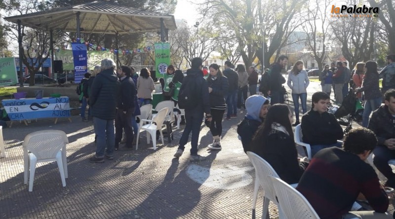 Profesionales y técnicos que trabajan en el CONICET y que vienen sufriendo los recortes del gobierno nacional realizaron una clase pública en la Plaza San Martín para denunciar púb...
