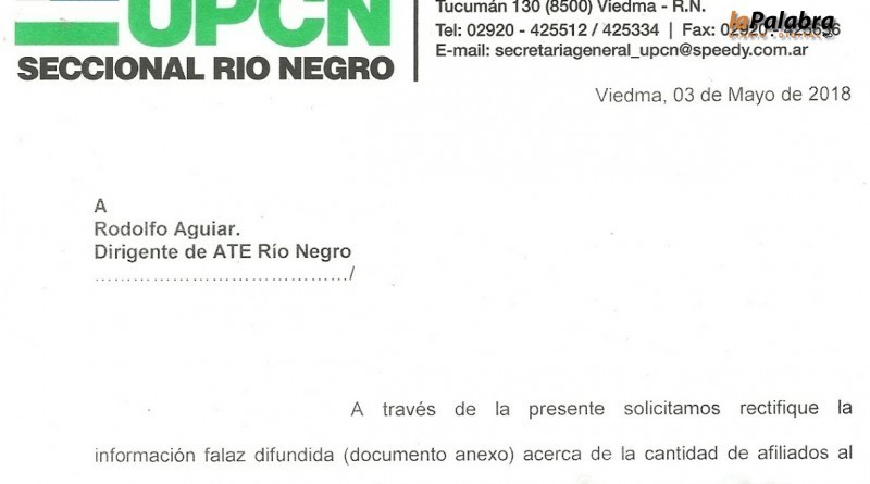 El gremio UPCN le envió una nota a Rodolfo Aguiar