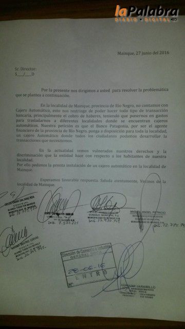 El edil Celso Salinas recordó que en la localidad de Mainque no hay cajero automático, restringiendo a los vecinos todo tipo de transacción bancaria, principal...