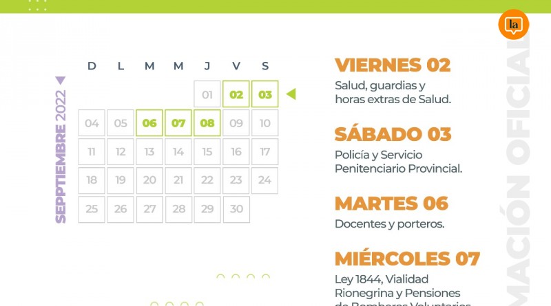 correspondiente a agosto, comenzará el viernes 2 de septiembre, con el depósito