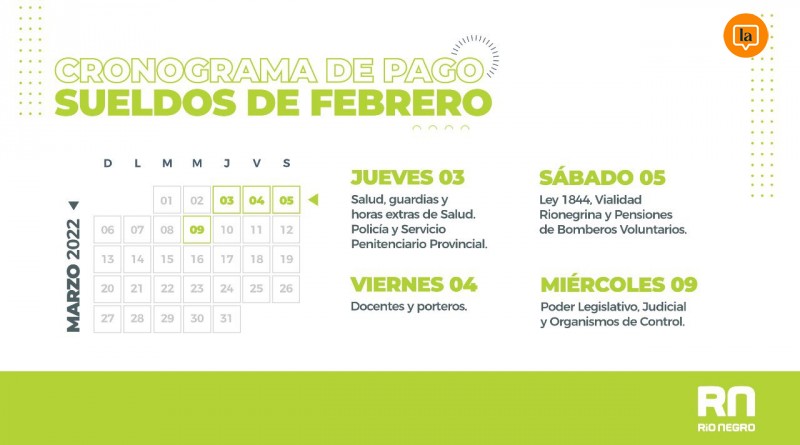 El jueves 3 de marzo comenzará el cronograma de pago a