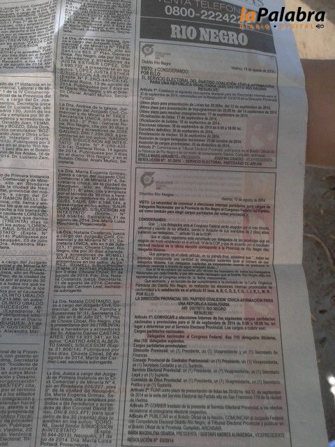 Las Direcciones Municipales de la CC ARI de Cipolletti, San Carlos de Bariloche, Viedma, Sierra Grande, General Conesa, Guardia Mitre, Villa Regina, Choele Choel, Pomona, Luis Belt...