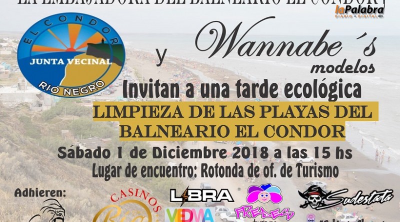 Este sábado desde las 15 horas, se realizará una jornada ecológica para preparar a el balneario El Cóndor para la próxima temporada de verano.Comenzando a cumplir con los proyectos...