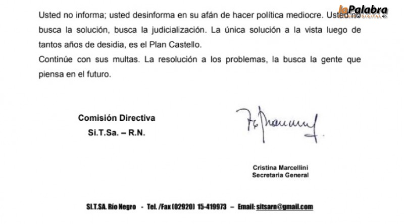 Desde la cúpula del Sindicato de Trabajadores de Saneamiento de Río Negro salieron al cruce de la concejal de la UCR Genoveva Molinari quién esta semana formalizó la presentación d...