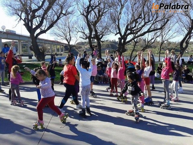 En una jornada soleada, las Escuelas Municipales de patín compartieron una tarde recreativa en la costanera de Viedma a la altura del puente Basilio Villarino.