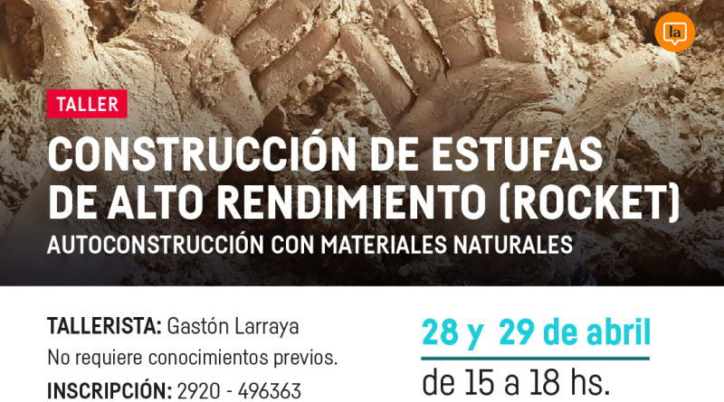 Los próximos 28 y 29 de abril de 15 a 18 se realizará en el Campus Viedma de la Universidad Nacional de Río Negro (UNRN) el Taller de “Construcción de Estufa Rocket de alto rendimi...