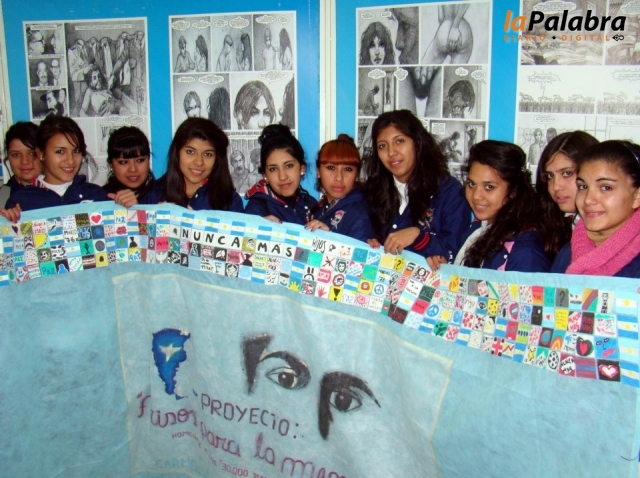 En la oportunidad, los alumnos sumaron a la muestra, un mural recordando a los 30.000 desaparecidos de la última dictadura militar. Se trata de un friso pintado colectivam...