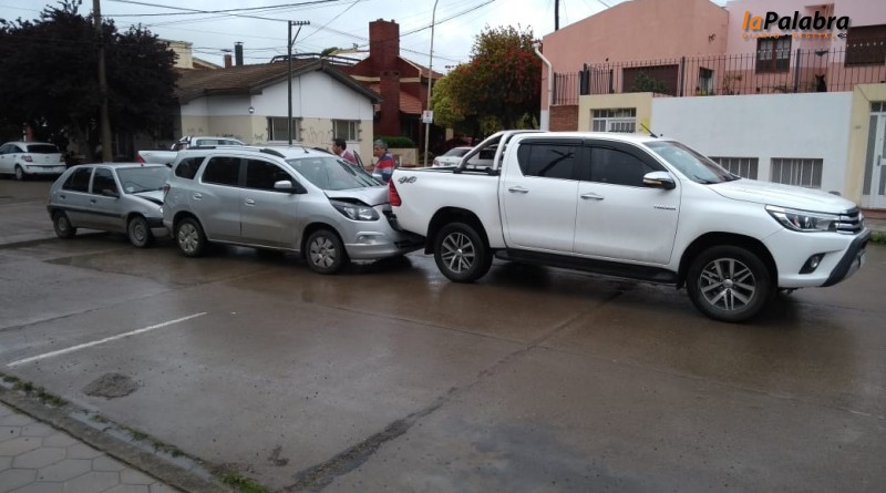 Sólo daños materiales fue el saldo de un choque en cadena que protagonizaron esta mañana tres vehículos en la esquina de Ceferino Namuncurá y Álvaro Barros.Los protagonistas fueron...