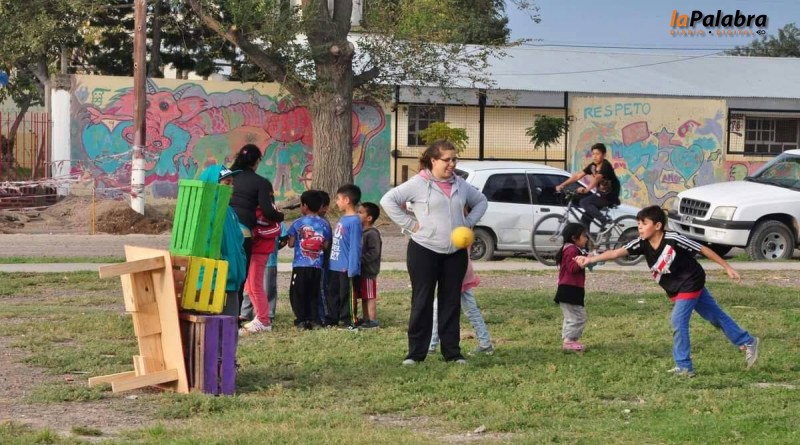 instaló en el Barrio Mi Bandera para más de 40 chicos que se acercaron a divertirse