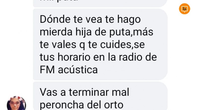 El mensaje textual fue: “Xq no te vas a besar con tu hermana negra hija de mil putas. Donde te vea te hago mierda hija de puta, más te vale que te cuides, sé tus horarios en la radio de FM acústica. Vas a terminar mal peroncha del orto”.