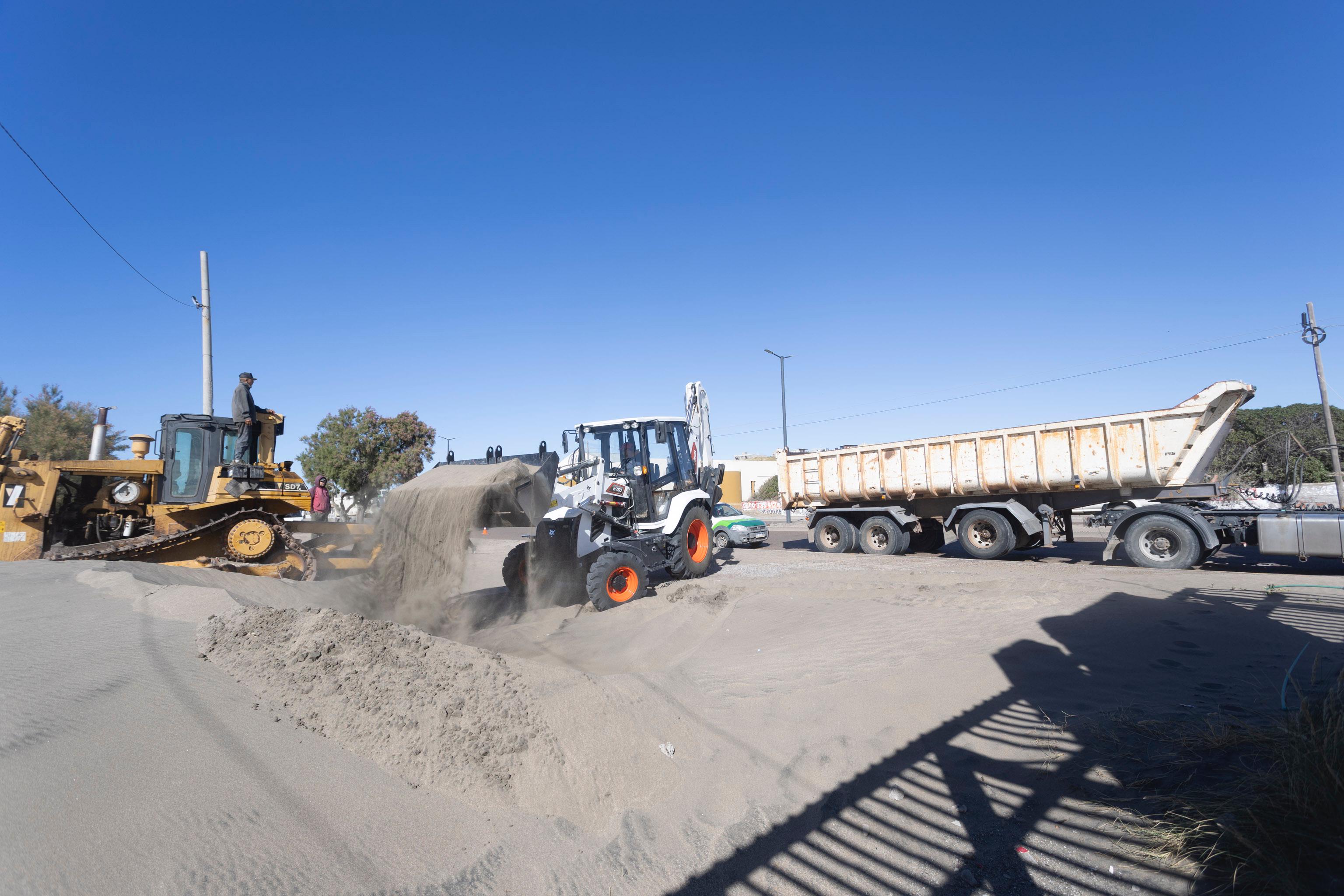 En paralelo, se llevó adelante el retiro de arena acumulada, con un movimiento que alcanzó las 12 bateas y 29 chasis. Además, se procedió a la limpieza y pintura de cordones cuneta sobre la calle 69, desde la rotonda de ingreso hasta la Oficina de Turismo, y se efectuaron trabajos de bacheo en las calles 8 y 77.