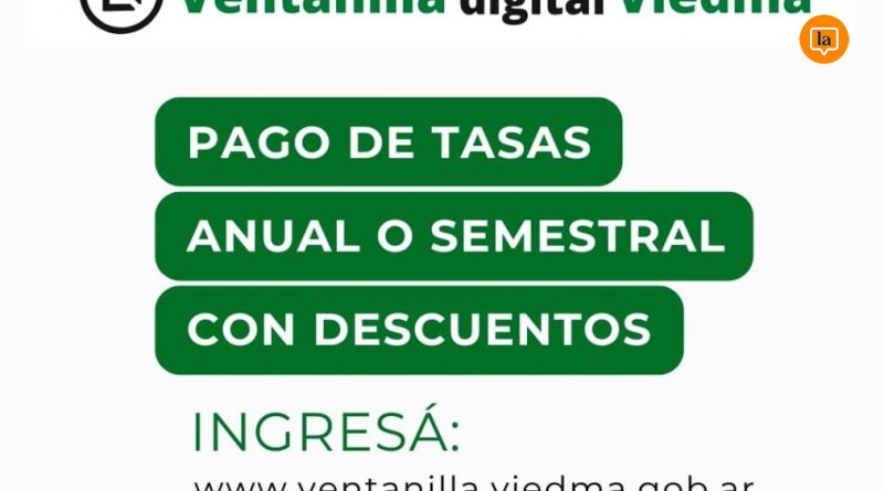 Las opciones de pago incluyen la Ventanilla Digital, disponible en ventanilla.viedma.gob.ar, el acceso a través del sitio oficial www.viedma.gob.ar, o la modalidad presencial en la sede municipal ubicada en calle Roca 146. Estas alternativas buscan facilitar el cumplimiento de las obligaciones tributarias y ampliar los canales de atención.