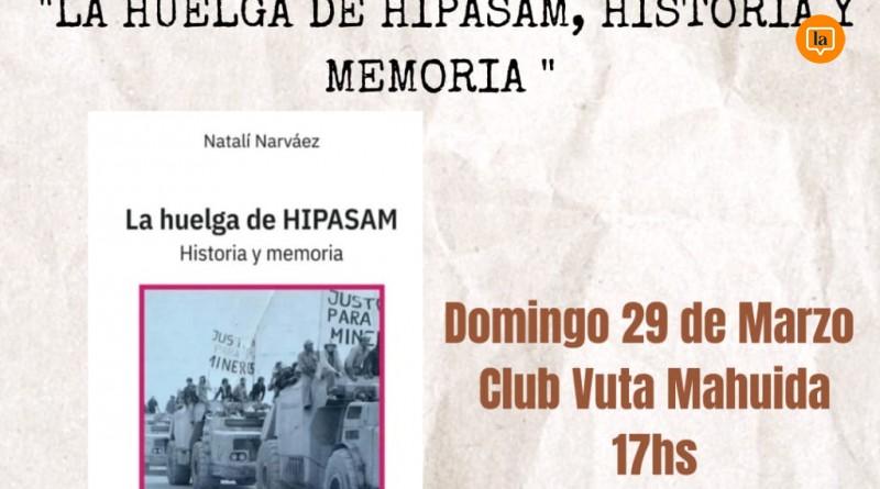 La historia del conflicto minero en Sierra Grande volverá a escena este viernes 29 de marzo, con la presentación del libro “La huelga de Hipasam, historia y memoria”, de la investigadora Natalí Narváez. La actividad se realizará a las 17 en el Club Vuta Mahuida y propone recuperar un episodio clave de la historia local y regional.