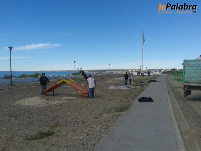 En la nueva plaza ya se colocaron cinco juegos saludables que los vecinos pueden utilizar para hacer sus rutinas diarias, y además en el día de hoy, se encofran y apu...