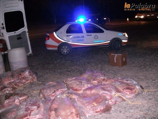 Personal policial secuestró esta madrugada 230 kilos de carne caprina en la Zona de Tránsito Alto Valle Sur, Destacamento Especial Puente Dique, en conjunto con emple...