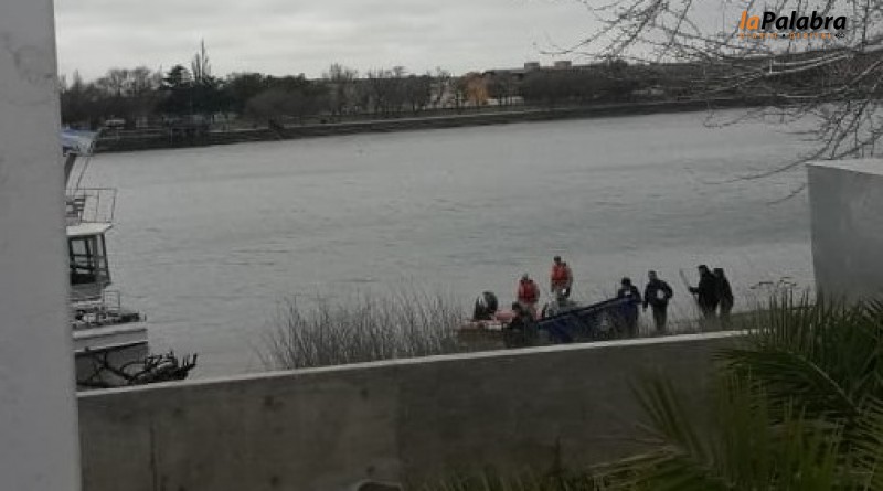 Personal de la Policía de Río Negro y de Prefectura trabajan en estos momentos en el río Negro a la altura del muele de lanchas de Viedma para retirar el cuerpo de una persona que...