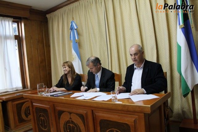 La firma del acuerdo la formalizaron el Juez Delegado de la Tercera Circunscripción Judicial y vocal del STJ Dr. Enrique Mansilla y el Arquitecto Ricardo Lerchundi por el Co...