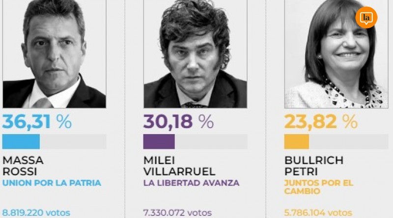 las mesas escrutadas, el candidato presidencial de Unión por la Patria (UxP),