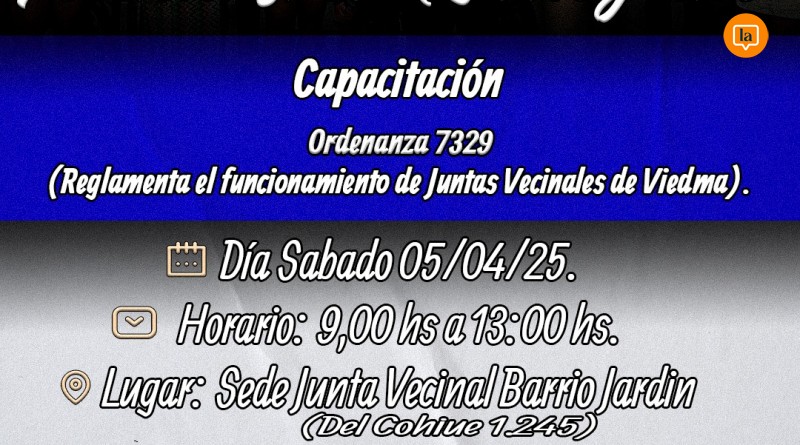La Asociación Rionegrina Vecinalista llevará a cabo su primera capacitación el próximo 5 de abril en la ciudad de Viedma, con el objetivo de abordar el funcionamiento de las juntas...