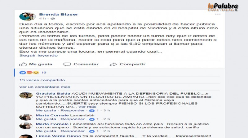 Una joven viedmense dejó en evidencia lo engorroso que es para los vecinos que lo necesitan conseguir un turno para atenderse con un especialista en el Hospital Artémides Zatti de...
