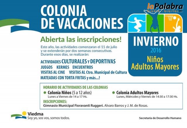 Las inscripciones para formar parte de la colonia de niños (de 5 a 12 años) podrán realizarse en el Gimnasio Municipal Fioravanti Ruggeri, de lunes a viernes,...