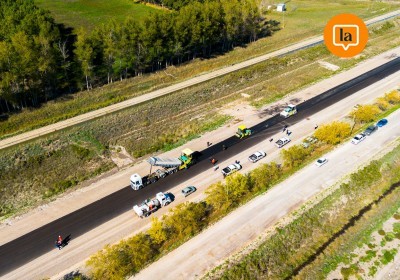 La empresa que realiza la obra de pavimentación de la Ruta Provincia Nº5 que une Sierra Grande con Playas Doradas paralizó los trabajos y dejó sin actividad a cerca de 40 trabajadores por la millonaria deuda que mantiene el gobierno nacional.