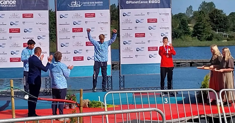 al consagrarse campeón en el Campeonato Mundial de Kayak Maratón, celebrado en