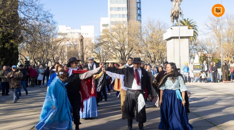 Concluido el acto oficial, la plaza San Martín se convirtió en una pista de baile donde familias y amigos se unieron para bailar el Pericón Nacional, llenando el espacio de alegría y color.