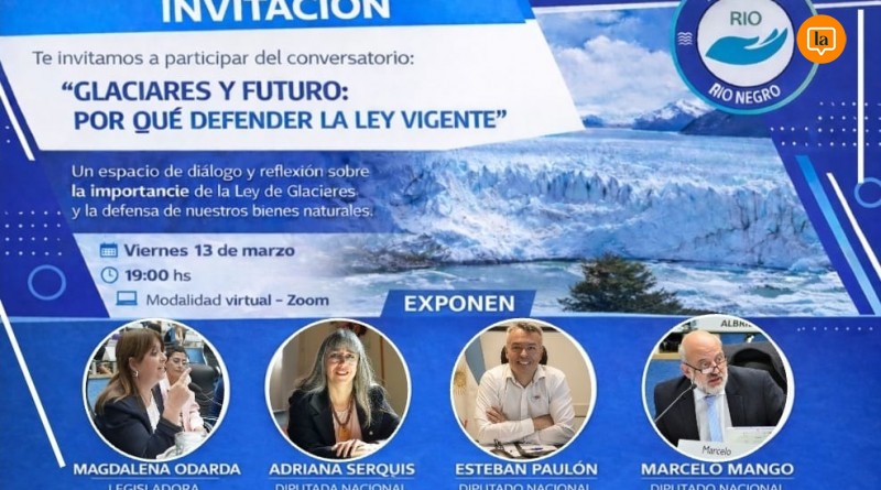 El encuentro, titulado “Glaciares y Futuro: Por qué defender la ley vigente”, contará con la participación de dirigentes y representantes legislativos de distintos niveles del Estado. Según informaron las y los organizadores, formarán parte del conversatorio los legisladores provinciales Magdalena Odarda y José Luis Berros, junto a la diputada nacional Adriana Serquis y los diputados nacionales Esteban Paulón y Marcelo Mango.