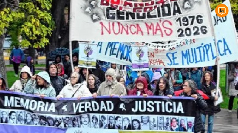La movilización por el 24 de marzo volvió a ocupar las calles de Viedma este lunes, a 50 años del golpe de Estado de 1976, con una convocatoria que se sostuvo pese a la lluvia y que reunió a distintos sectores en torno a las consignas de Memoria, Verdad y Justicia.