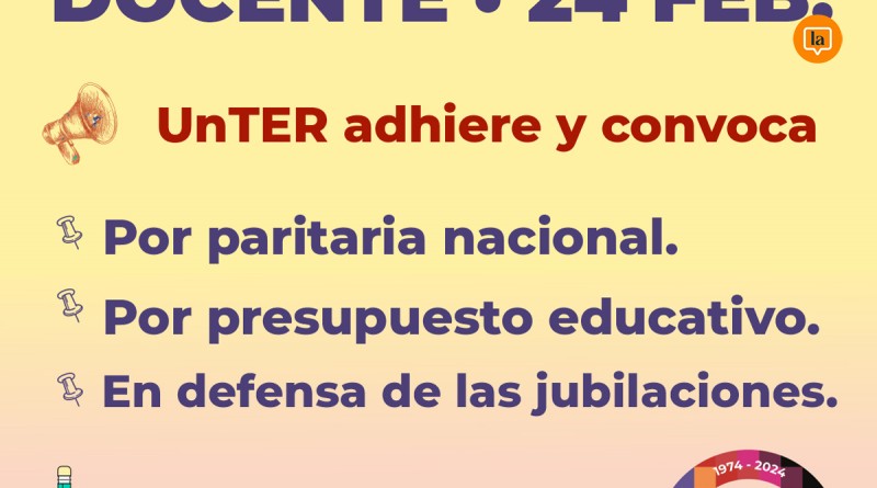 La Unión de Trabajadoras y Trabajadores de la Educación de Río Negro (UNTER) anunció su adhesión al paro nacional docente convocado por la Confederación de Trabajadores de la Educa...