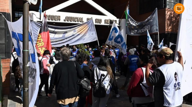 una concentración frente a los Tribunales de Viedma, donde se lleva a cabo el