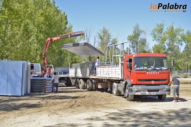 Secciones de lo que serán los camarines para los artistas y Globas con sus respectivas estructuras fueron las primeras cargas, mientras que se espera para mañana domi...